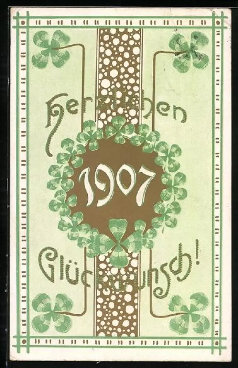 Künstler-AK Jahreszahl 1907 von Klee umrahmt
