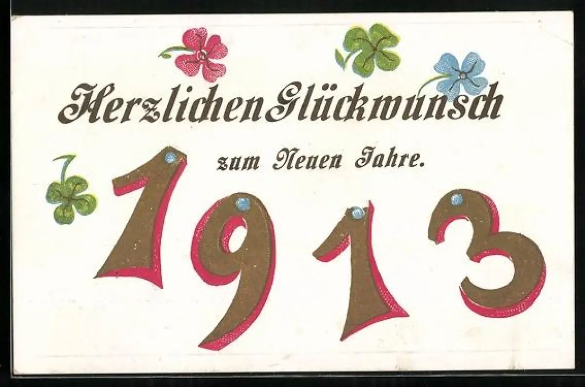 Künstler-AK Jahreszahl 1913 mit bunten Kleeblättern