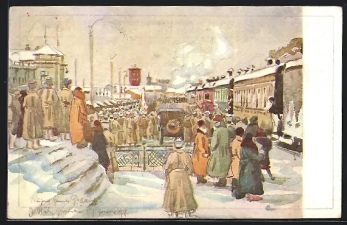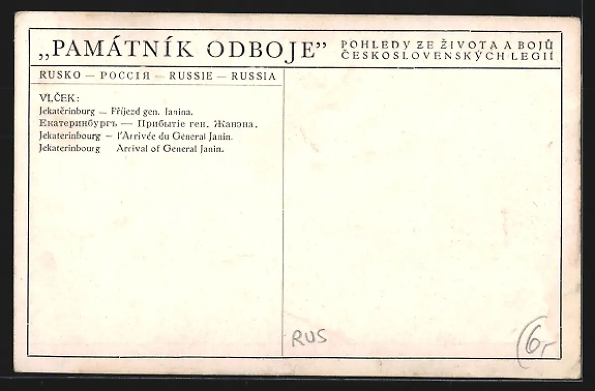 Künstler-AK Jekaterinbourg, l'Arrivée du Géneral Janin
