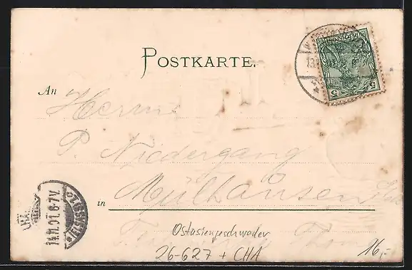alte Ansichtskarte, gelaufen 1901, Eckknicke unten, guter Zustand