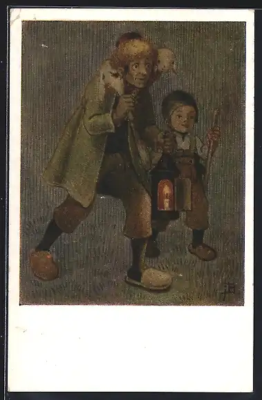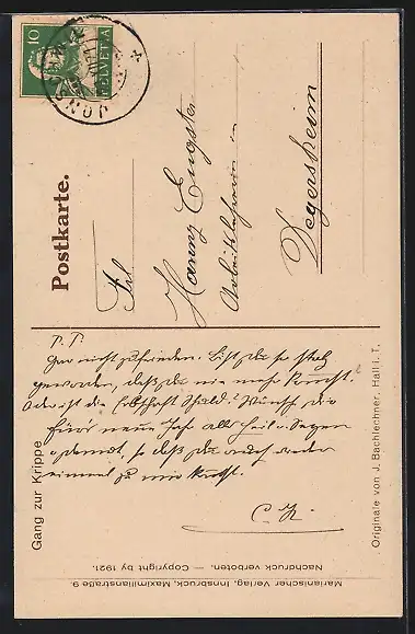 Künstler-AK Josef Bachlechner: Gang zur Krippe