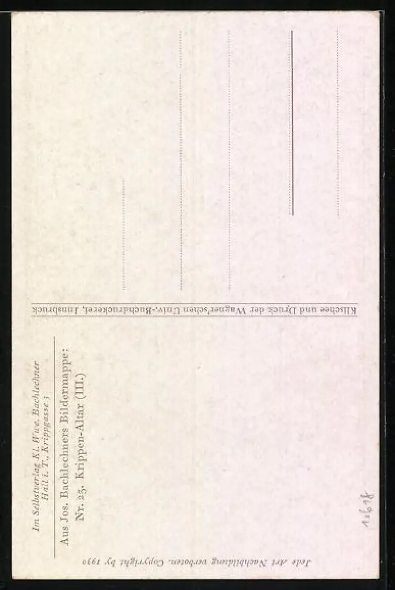 Künstler-AK Josef Bachlechner: Krippen-Altar, Kinder mit Lämmchen beten