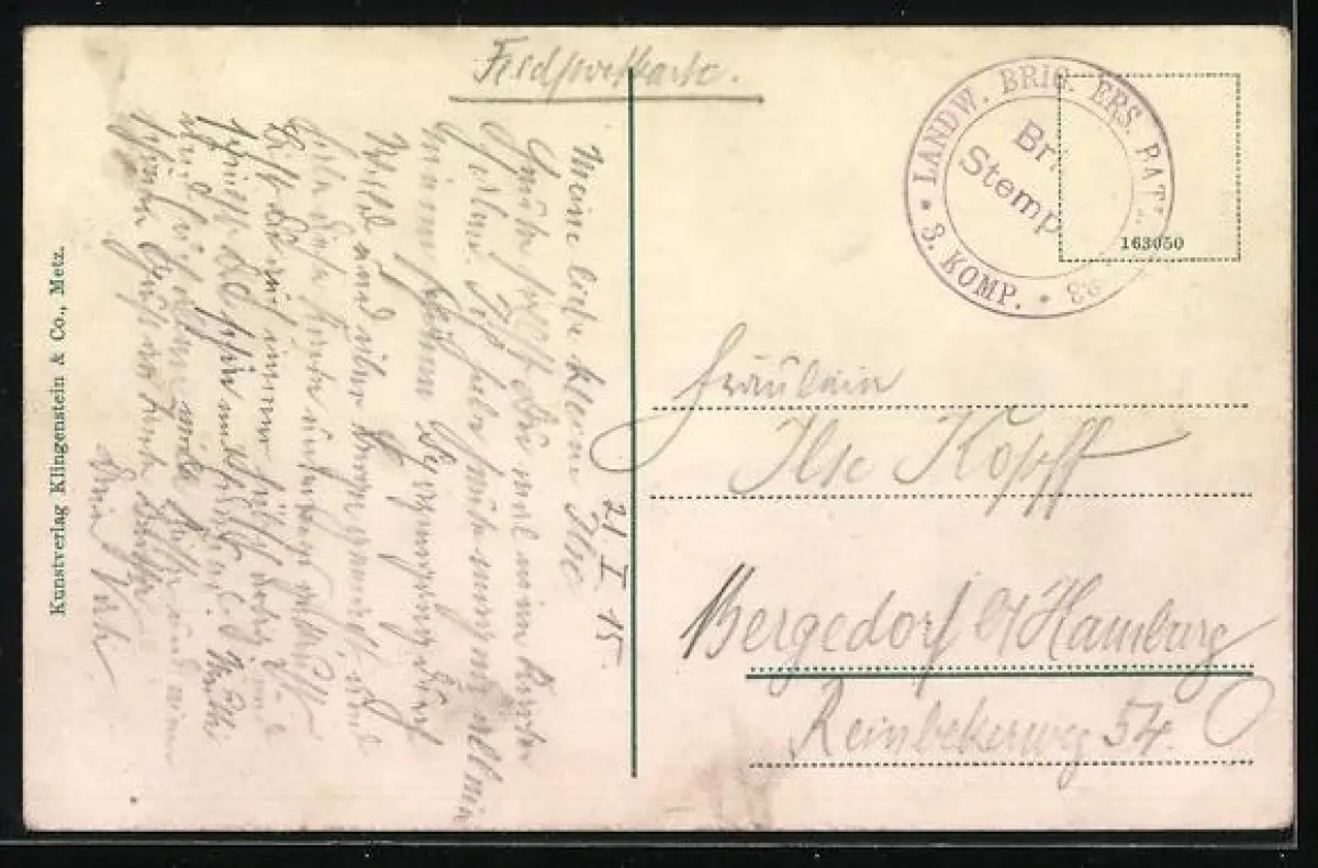 alte Ansichtskarte, gelaufen 1915, Bugspur vert. unten li., guter Zustand