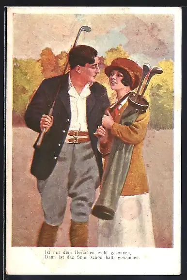Künstler-AK Junge Frau mit ihrem Liebsten beim Golfen