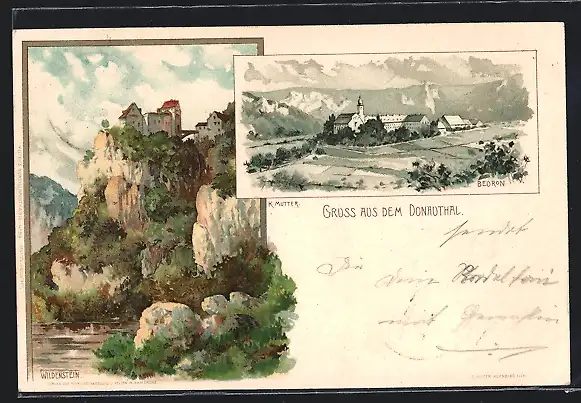 Künstler-AK K. Mutter: Beuron, Gesamtansicht und Wildenstein