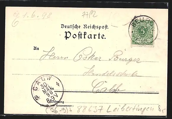 alte Ansichtskarte, gelaufen 1898, guter Zustand