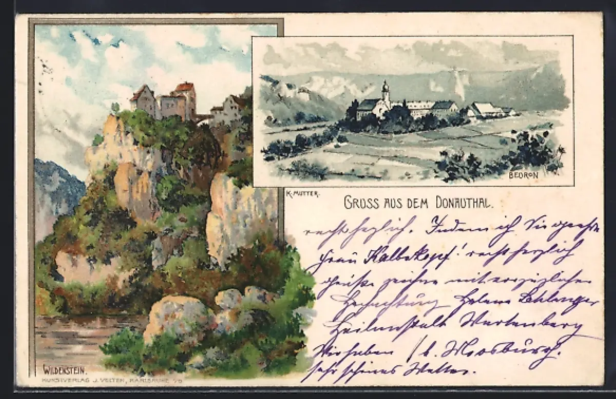 Künstler-AK K. Mutter: Beuron, Ortsrand, Wildenstein im Donautal