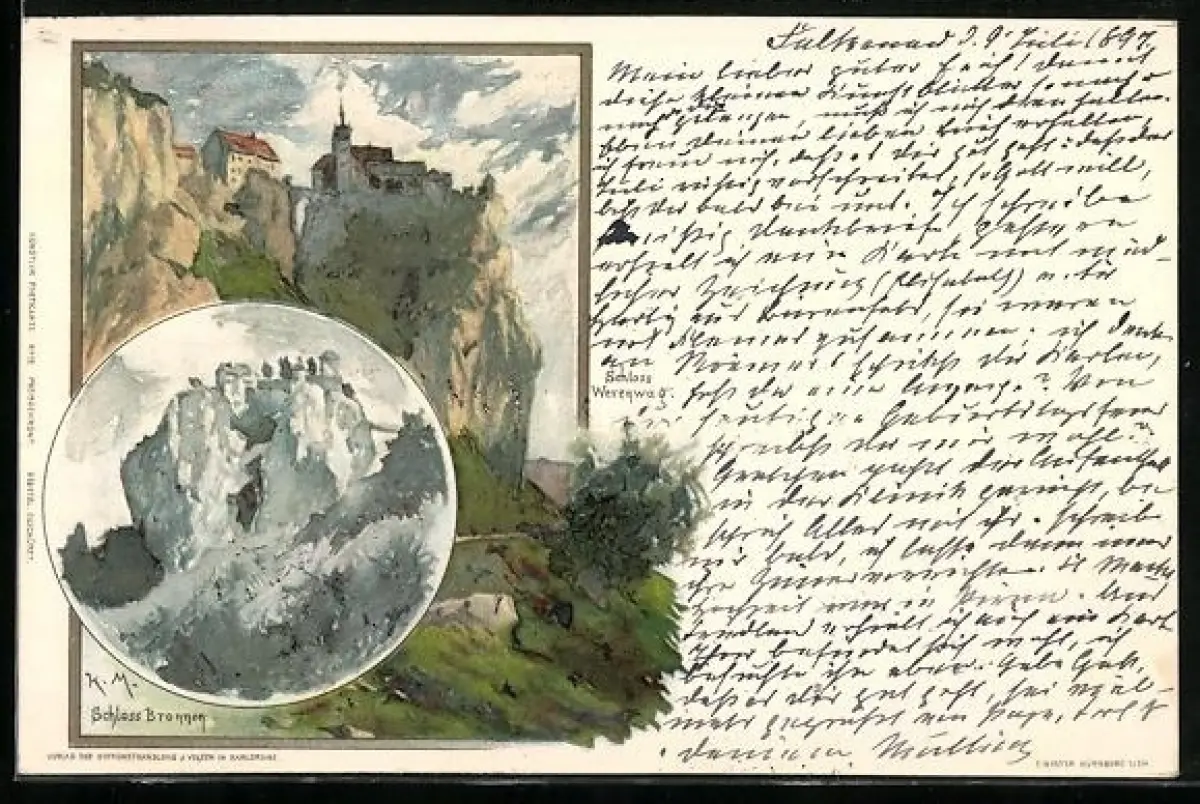Künstler-AK K. Mutter: Beuron, Schloss Bronnen, Schloss Werenwag