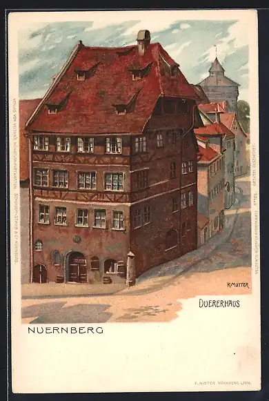 Künstler-AK K. Mutter: Nürnberg, Dürerhaus, Eckansicht