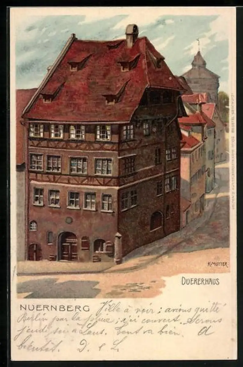 Künstler-AK K. Mutter: Nürnberg, Dürerhaus, Strassenansicht