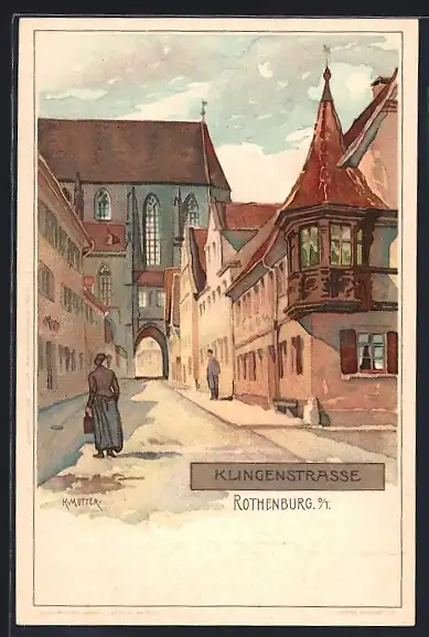 Künstler-AK K. Mutter: Rothenburg, Partie auf der Klingenstrasse
