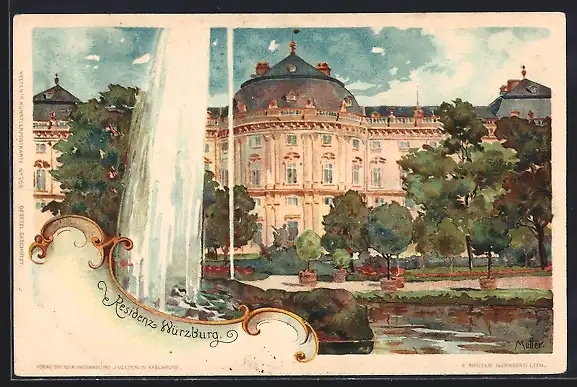 Künstler-AK K. Mutter: Würzburg, Blick auf die Residenz