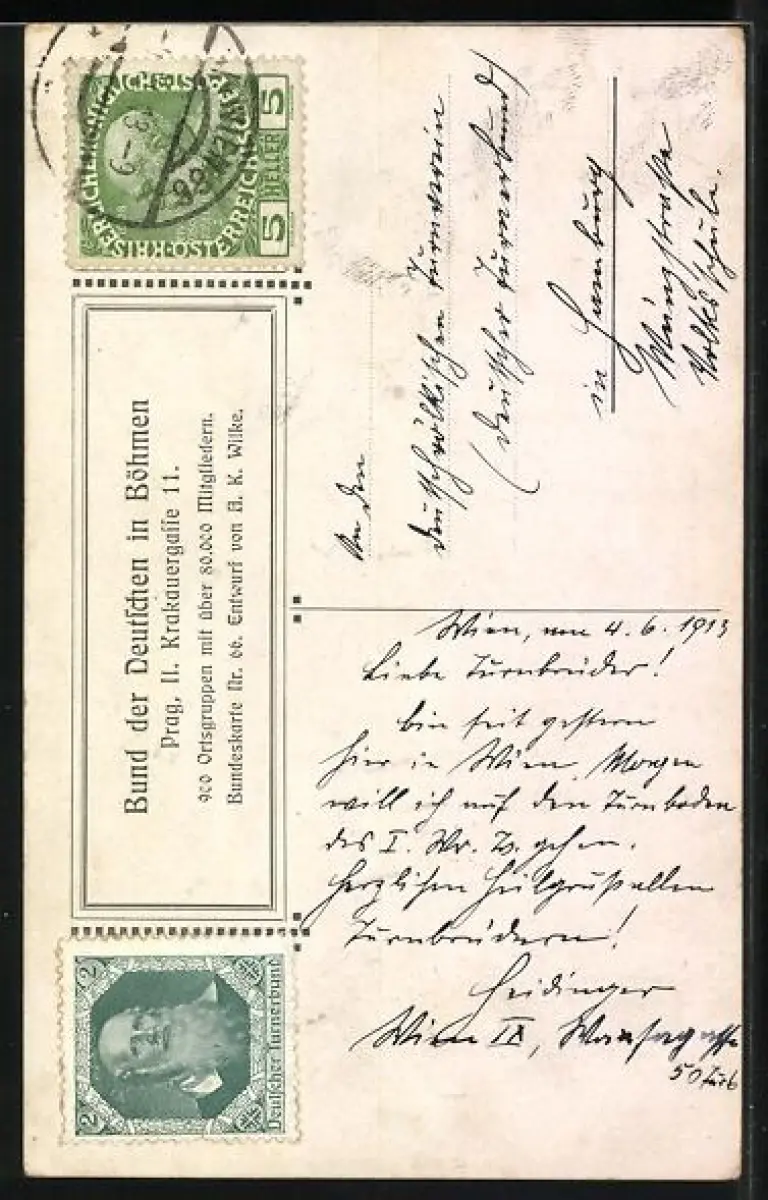 gelaufen 1913, Eckknick re. oben, guter Zustand