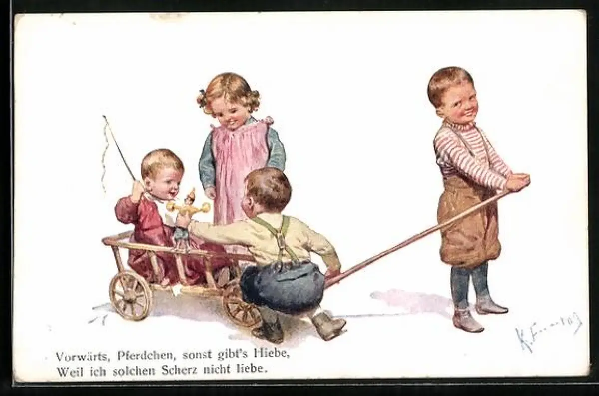 Künstler-AK Karl Feiertag: Kinder mit Wägelchen