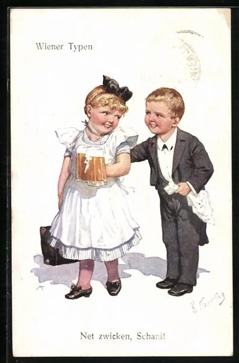 Künstler-AK Karl Feiertag: Wien, Net zwicken, Schani!, Kinder