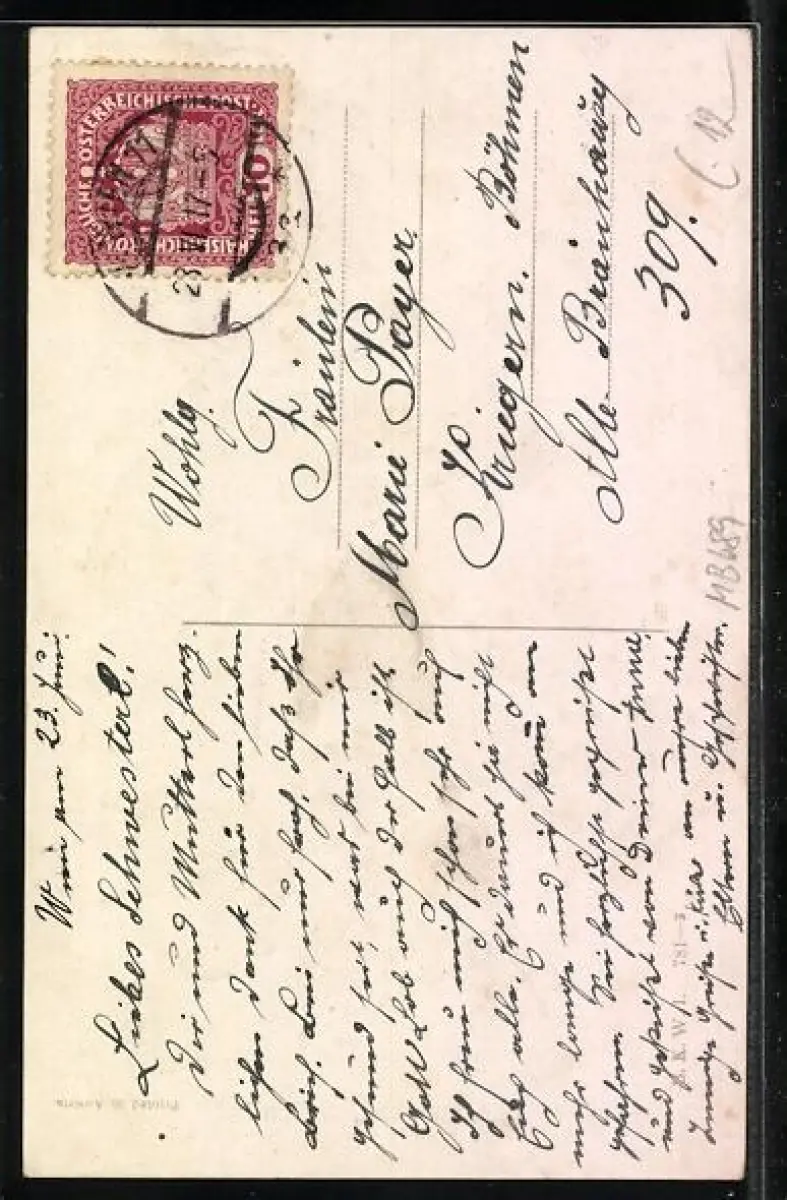 alte Ansichtskarte, gelaufen, Stempelspur, guter Zustand