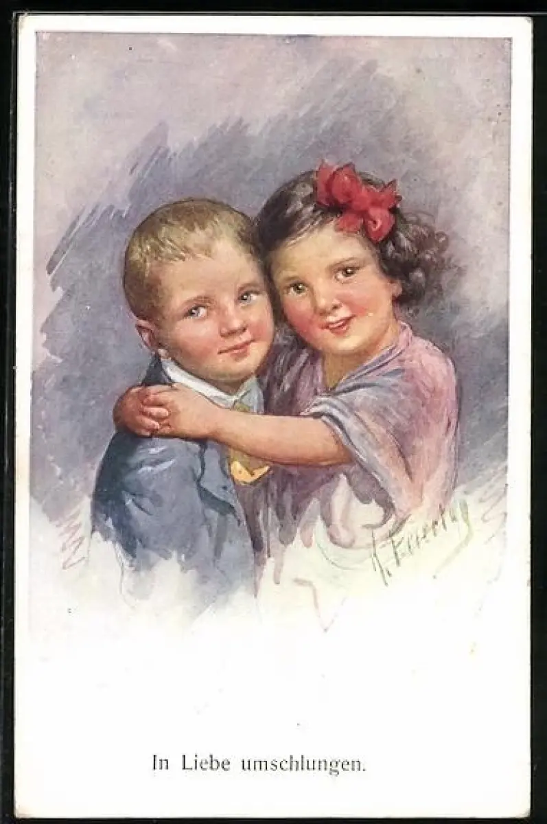 Künstler-AK Karl Feiertag: bezauberndes Kinderpaar umarmt sich