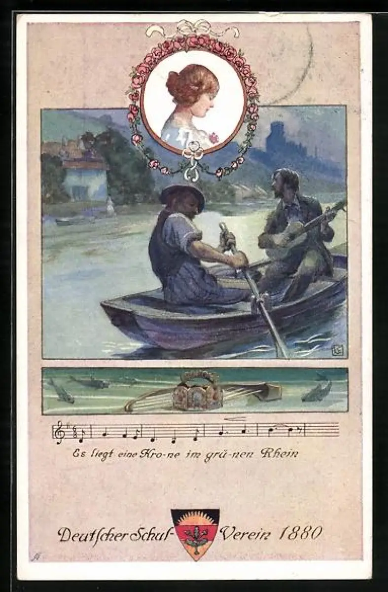 Künstler-AK Karl Friedrich Gsur: Deutscher Schulverein Nr. 91, Es liegt eine Krone im grünen Rhein