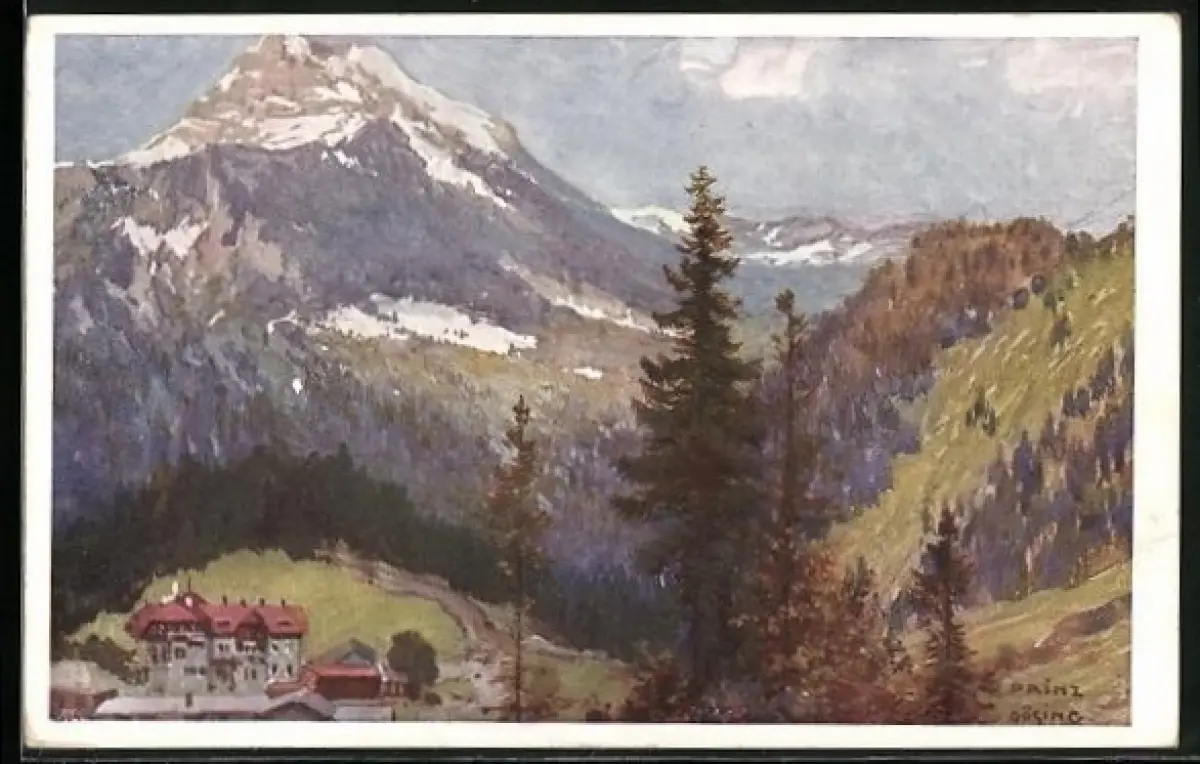 Künstler-AK Karl Ludwig Prinz: Gösing, Panorama mit dem Ötscher