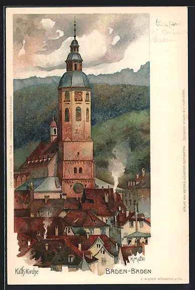 Künstler-AK Karl Mutter: Baden-Baden, Blick zur Katholischen Kirche