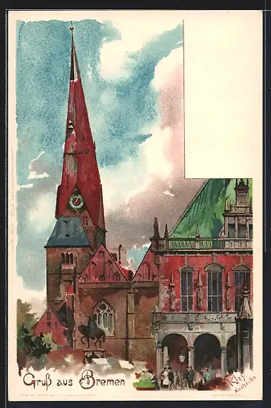 Künstler-AK Karl Mutter: Bremen, Kirche und Denkmal
