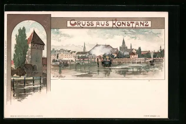 Künstler-AK Karl Mutter: Konstanz, Schiffsanleger am Bodenseeufer