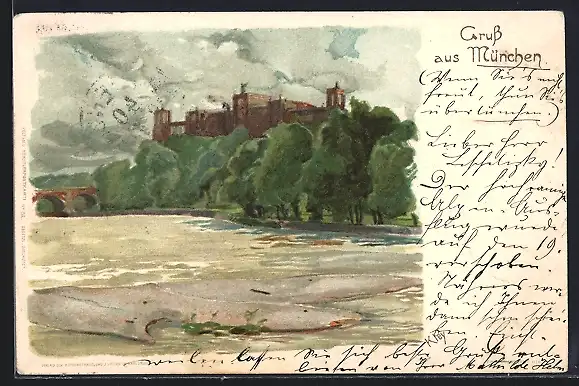 Künstler-AK Karl Mutter: München, Isarblick zum Maximilianeum