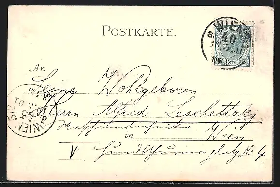 alte Ansichtskarte, gelaufen 1901, Stempelspur, guter Zustand