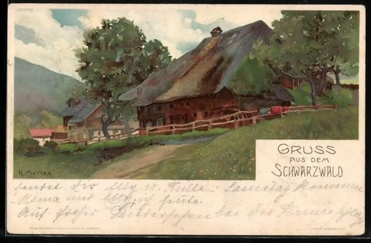 Künstler-AK Karl Mutter: Partie an einem Schwarzwaldhaus