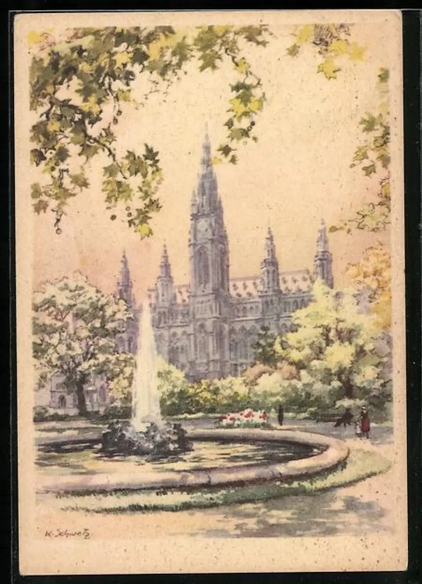 Künstler-AK Karl Schwetz: Wien, Rathaus