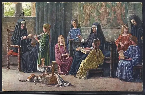 Künstler-AK Kassel, Tausendjahrfeier, Nonnen des Augustiner-Nonnenklosters als Jugenderzieherinnen im Jahre 1163