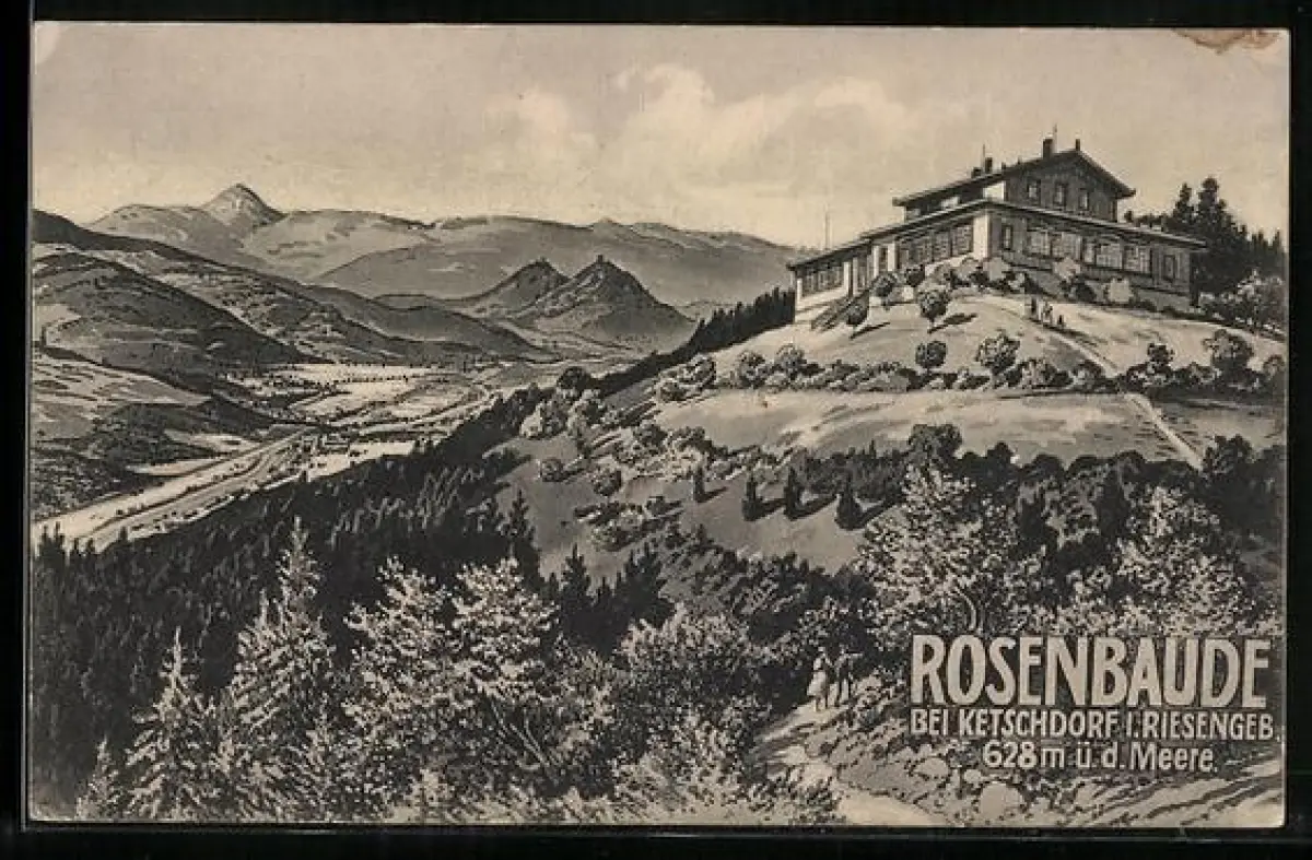 Künstler-AK Ketschdorf, Restaurant Rosenbaude von Arthur Pätzold