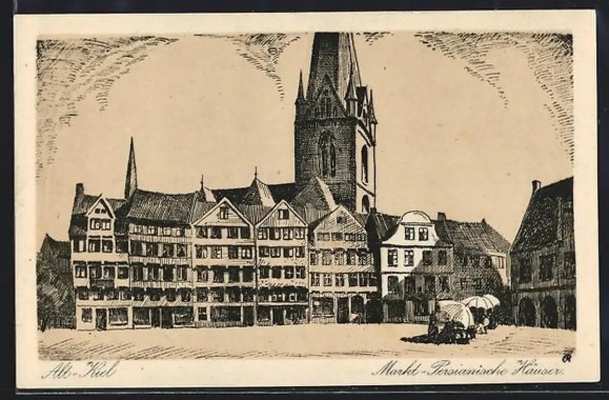 Künstler-AK Kiel, Markt, Persianische Häuser