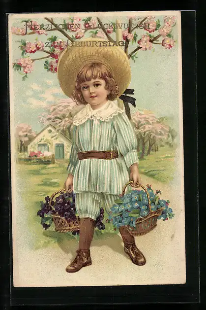 Künstler-AK Kind mit Blumenkörben