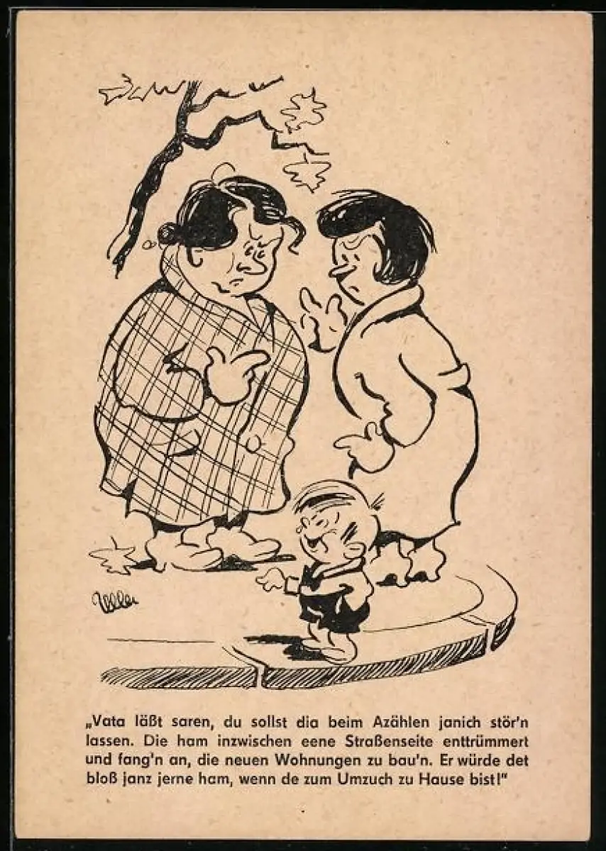 Künstler-AK Kind redet mit seiner Mutter, Vata lässt saren, du sollst dia beim Azählen..., Berliner Zeitung