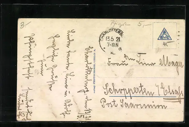 alte Ansichtskarte, gelaufen 1921, Briefmarke entfernt, Eckknick unten re., guter Zustand