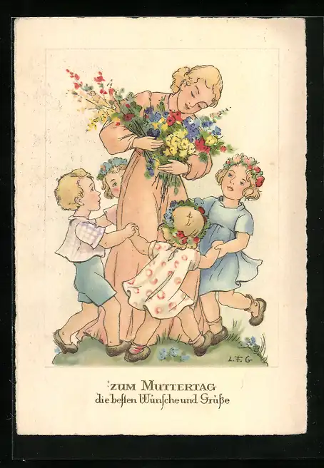 Künstler-AK Kinder tanzen zum Muttertag um ihre liebende Mutter herum