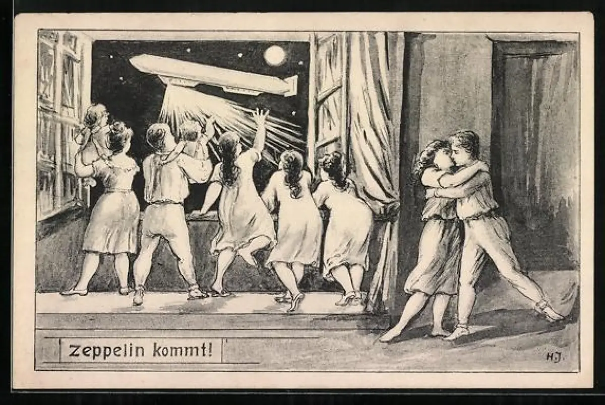 Künstler-AK Kinder winken einem Zeppelin
