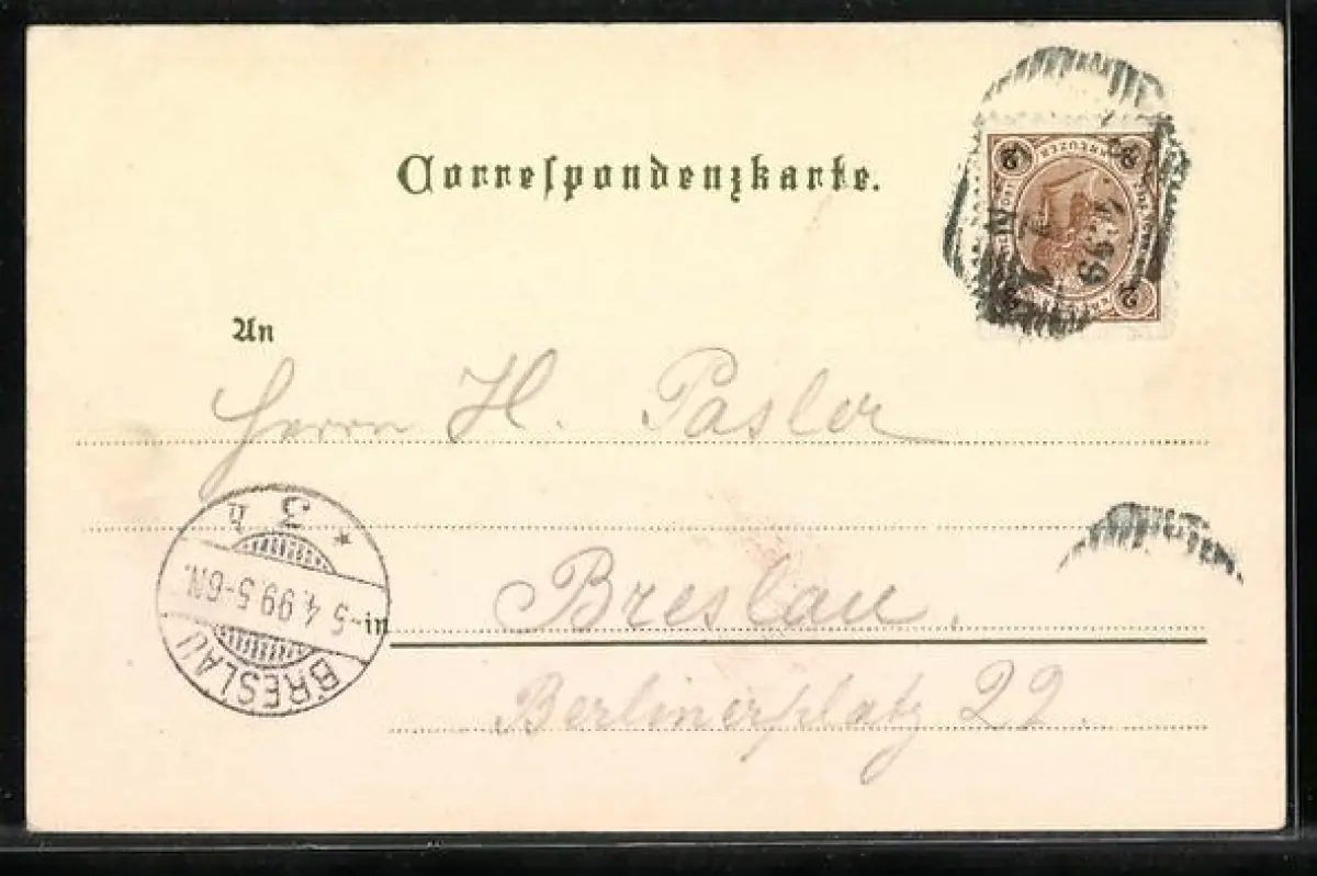 alte Ansichtskarte, gelaufen 1899, Eckknicke oben, guter Zustand