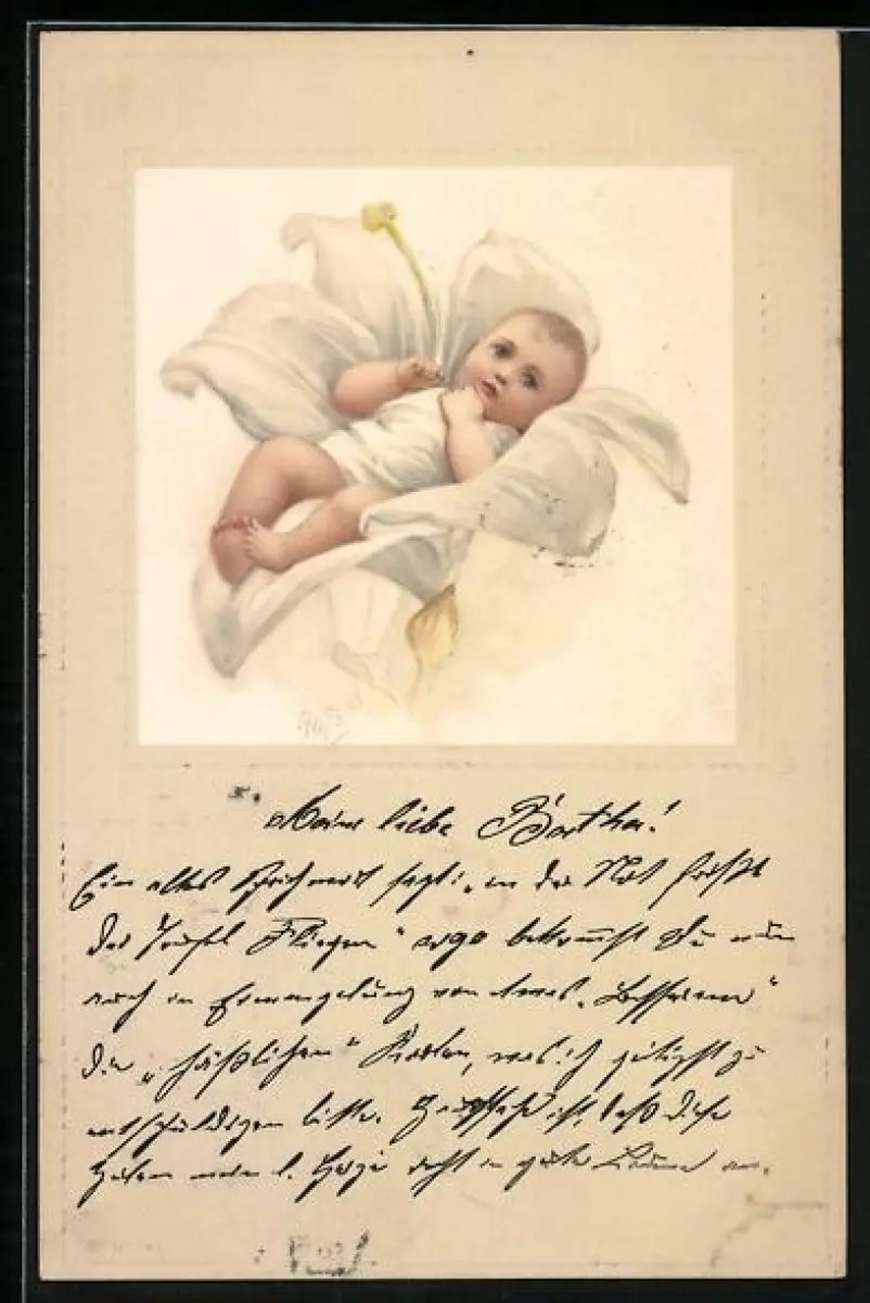 Künstler-AK Kleinkind in einer Blüte liegend, Metamorphose