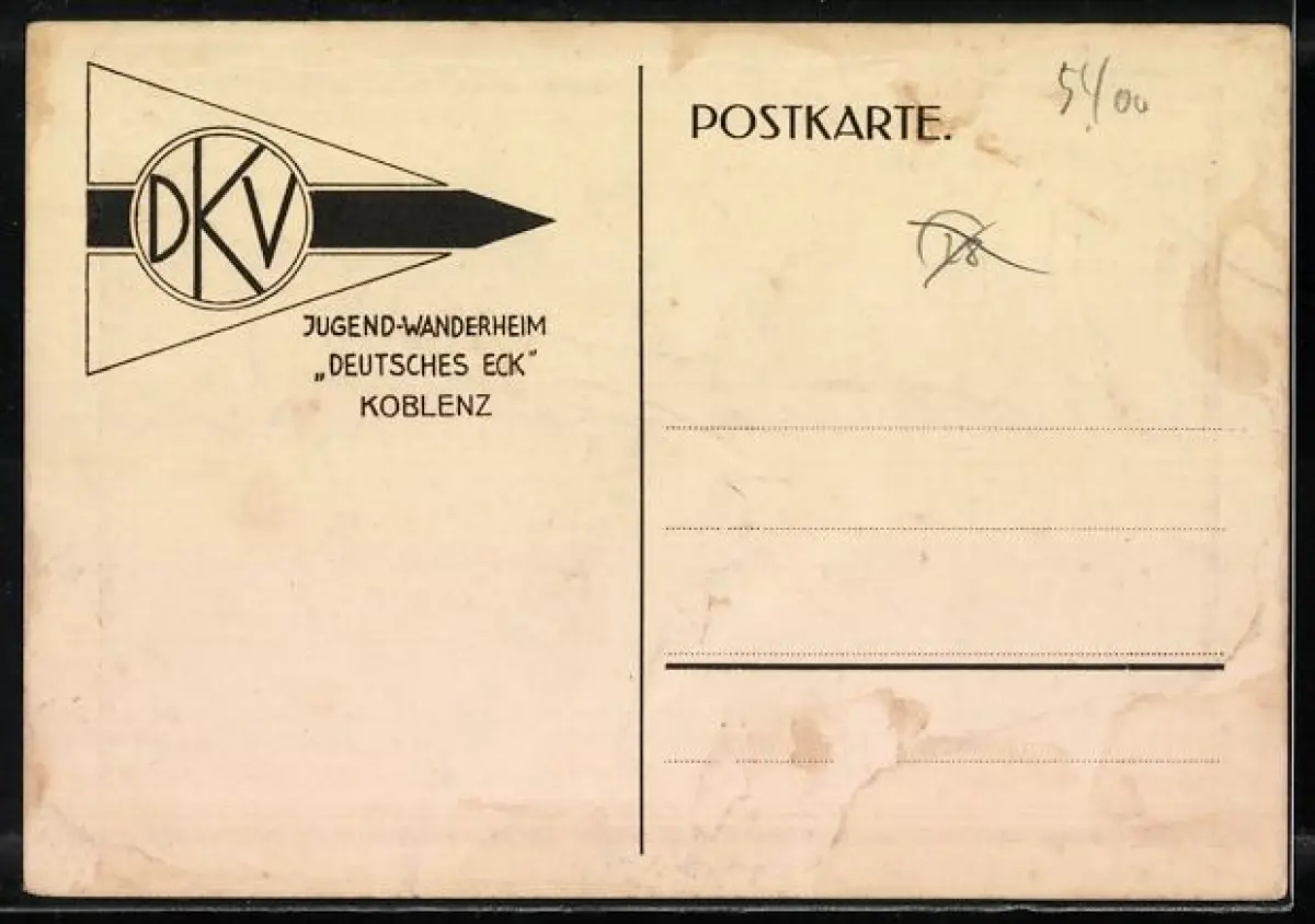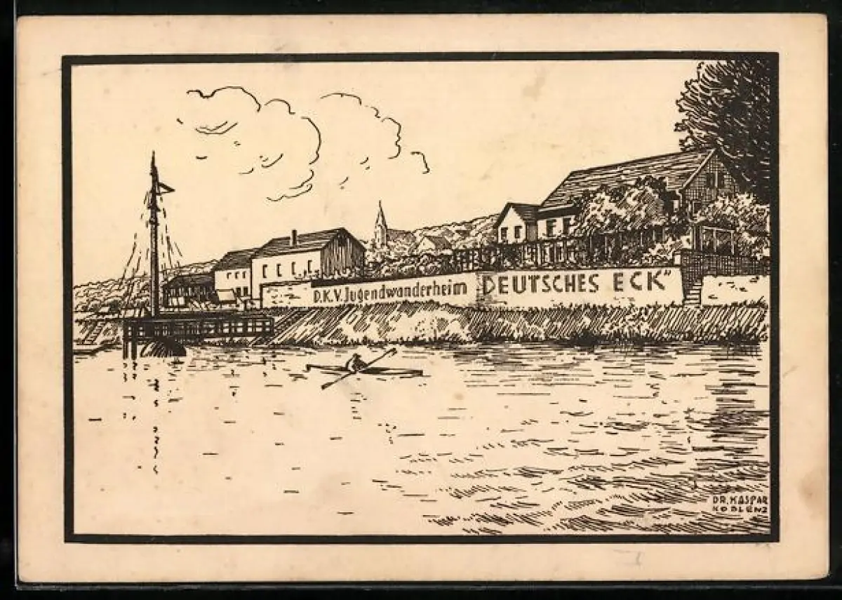Künstler-AK Koblenz, DKV-Jugendwanderheim Deutsches Eck
