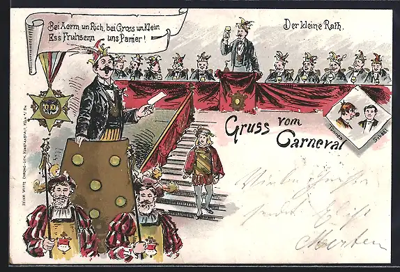 Künstler-AK Köln a. Rh., Der kleine Rath auf dem Carneval