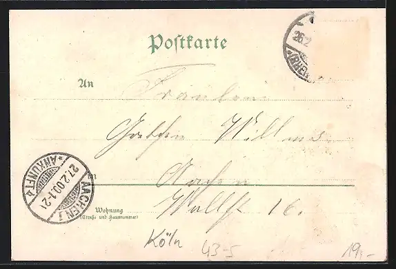 alte Ansichtskarte, gelaufen 1900, Einriss li. mittig, Briefmarke entfernt, guter Zustand