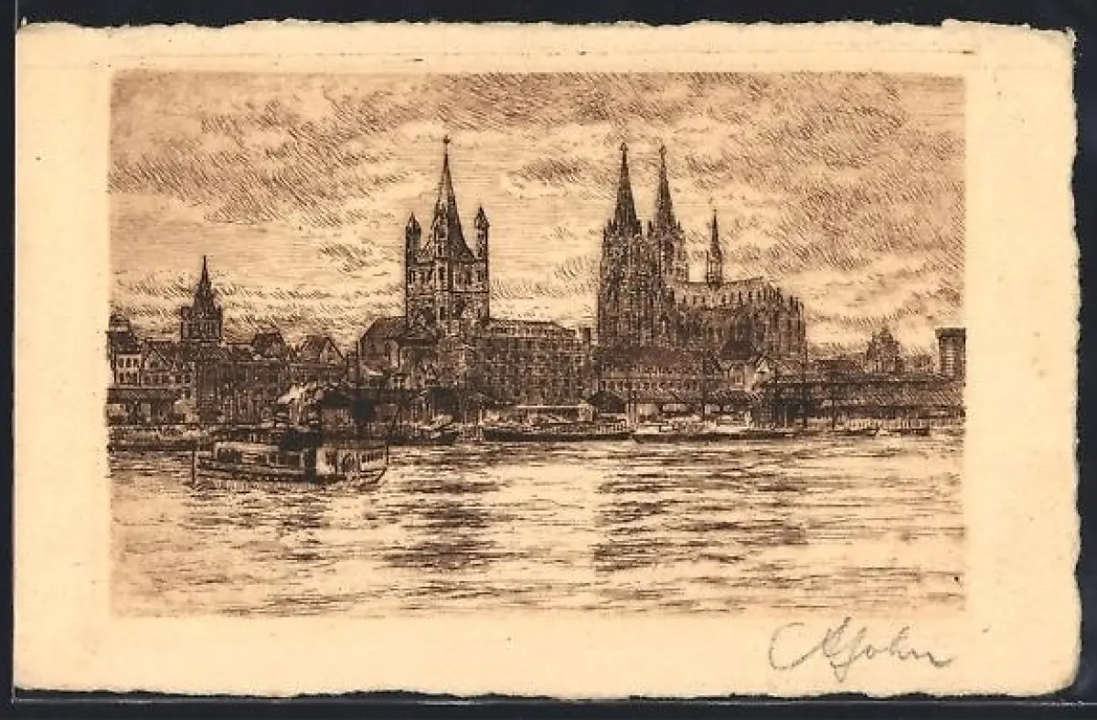 Künstler-AK Köln a. Rh., Stadtpanorama vom Rhein aus