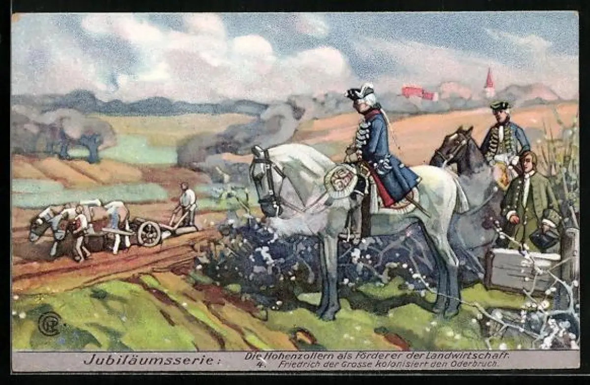 Künstler-AK König Friedrich II. (der Grosse) kolonisiert den Oderbruch