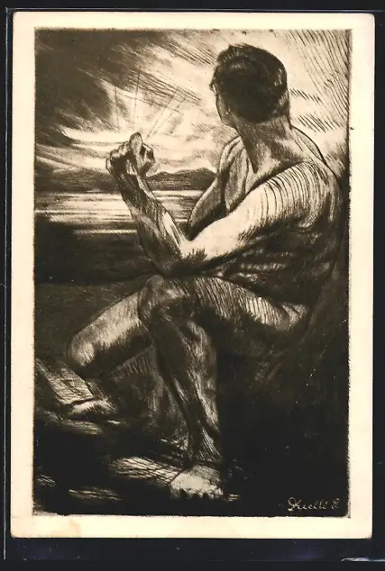 Künstler-AK Konstanz, Absolvia Abitur der Zeppelin-Oberrealschule 1926, Sitzender abgewandter Mann