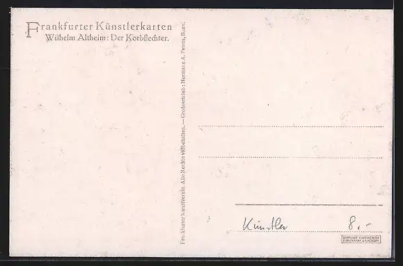 Künstler-AK Korbflechter mit Hund vor seiner Haustür