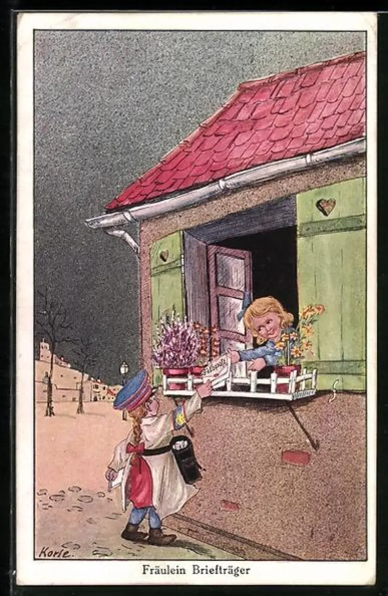 Künstler-AK Korle: Fräulein Briefträger