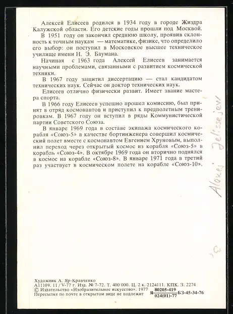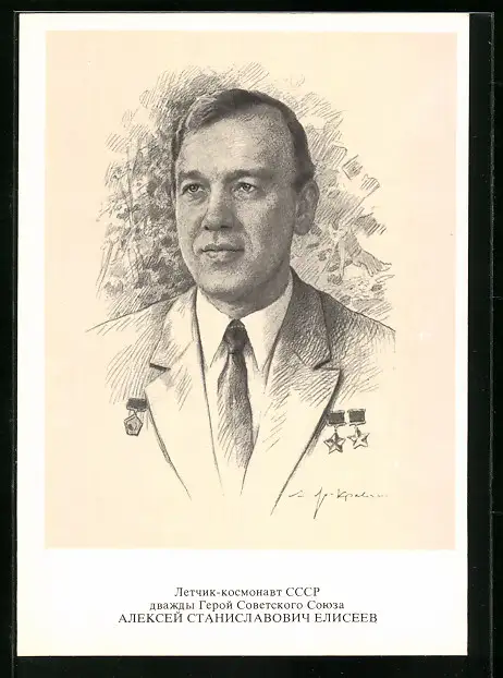 Künstler-AK Kosmonaut Alexej Jelissejew in Uniform mit Orden