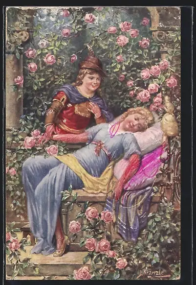 Künstler-AK Kränzle: Dornröschen, Der Prinz findet das schlafende Dornröschen